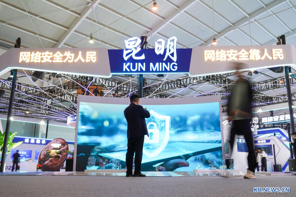 15일 관람객들이 윈난(雲南)성 쿤밍(昆明)에서 열린 ‘2025 국가사이버안보 홍보주간(2025 China Cybersecurity Week)’ 부대 행사인 사이버 안보 박람회 및 사이버 안보 제품과 서비스 국제 설명회를 관람하고 있다.