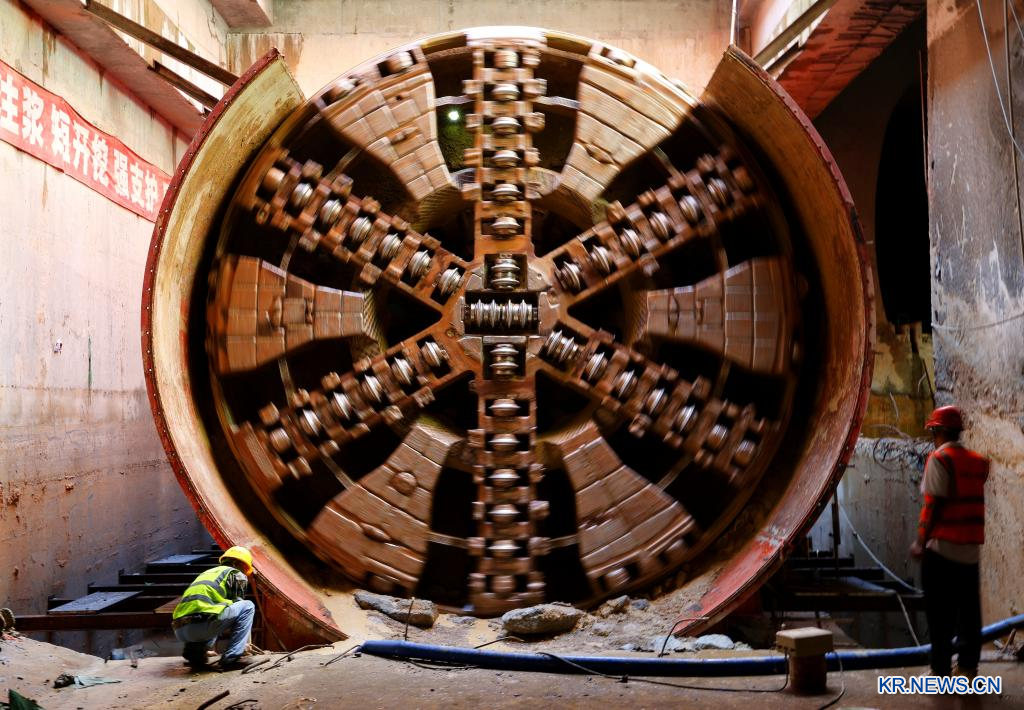 16일 쑤이관선 도시 간 철도 첸황 터널 구간의 실드 굴진기가 무사히 터널을 관통했다. 2025.9.17