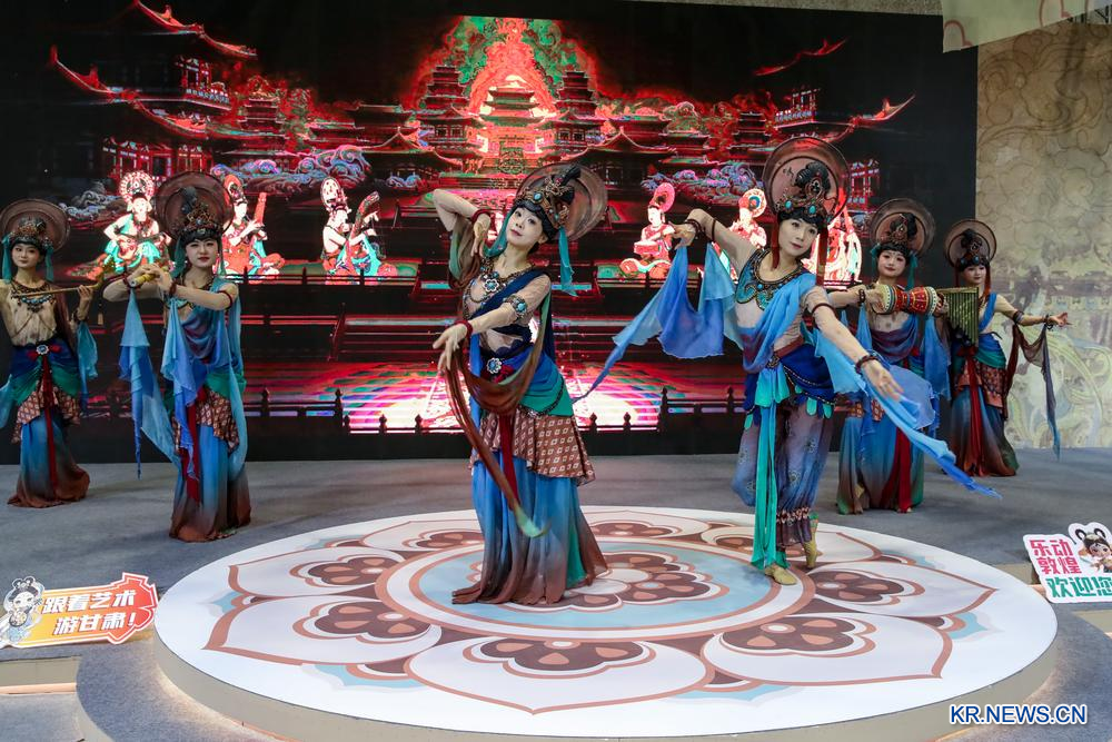 21일 '제8회 실크로드(둔황)국제문화박람회'에서 공연을 선보이는 공연자들.