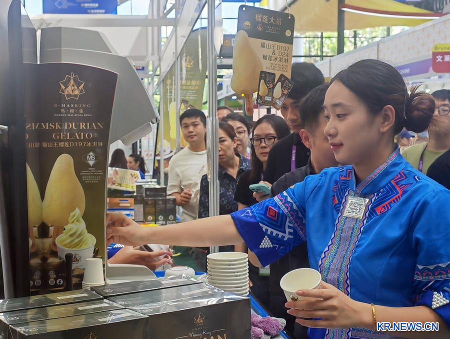 [신화망 난닝 9월24일] '제22회 중국-아세안 엑스포(CAEXPO)' 캄보디아관을 찾은 많은 관람객 손엔 '망고 아이스크림'이 쥐어져 있었다. 참가업체는 "오늘 다섯 번째 물량이 이미 다 팔렸다"고 전했다.