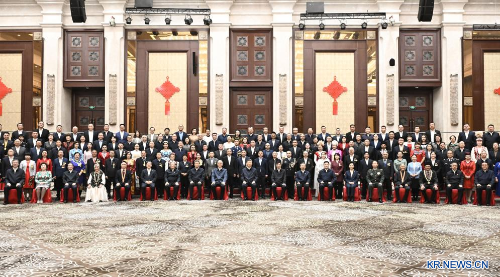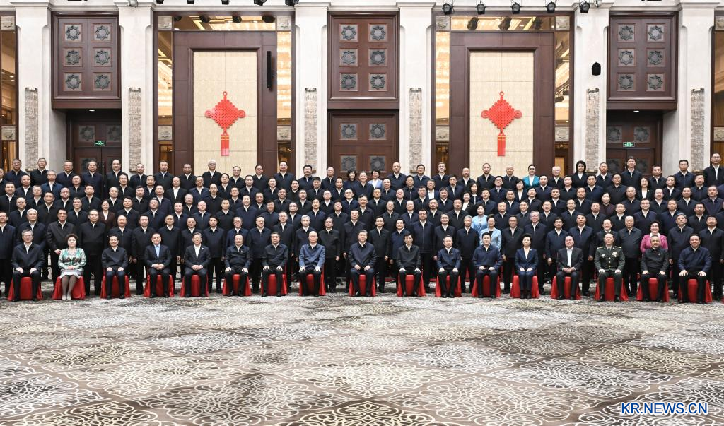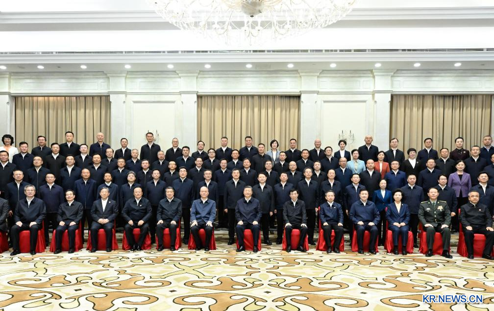시진핑(習近平) 중국 공산당 중앙위원회 총서기, 국가주석, 중앙군사위원회 주석이 23일 오후 우루무치(烏魯木齊)에서 신장 지원 간부 대표들을 접견하고 함께 기념사진을 찍었다.pagebreak