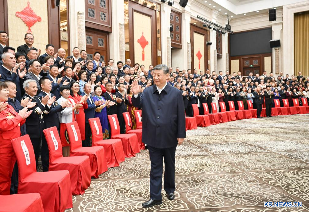 [신화망 우루무치 9월24일] 시진핑(習近平) 중국 공산당 중앙위원회 총서기, 국가주석, 중앙군사위원회 주석이 23일 오후 우루무치(烏魯木齊)에서 신장위구르자치구 각 민족 각계 대표들을 접견하고 함께 기념사진을 찍었다. pagebreak