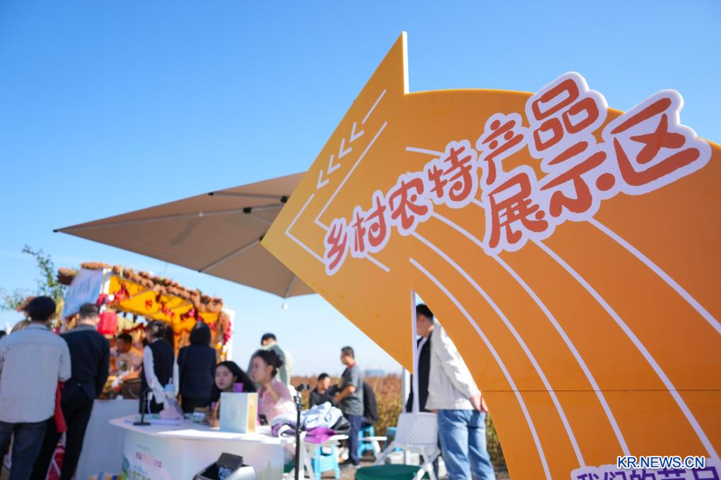 23일 헤이룽장성 자무쓰시 화난현에서 열린 축하 행사 현장에서 관람객이 특색 제품 전시 구역을 둘러보고 있다.