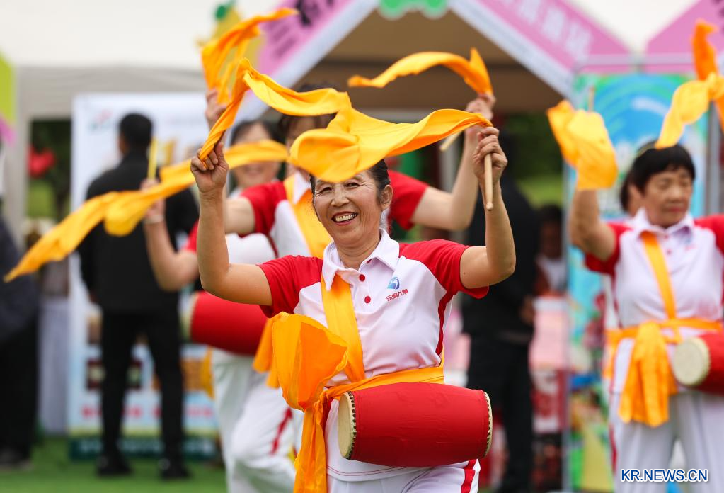 23일 허베이성 위안스현(元氏)에서 열린 행사 현장에서 양거(秧歌·중국 북방 농촌 지역의 민간 가무)를 선보이고 있다.