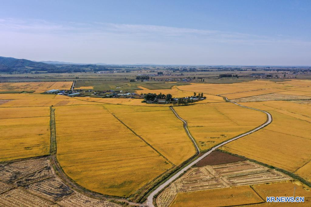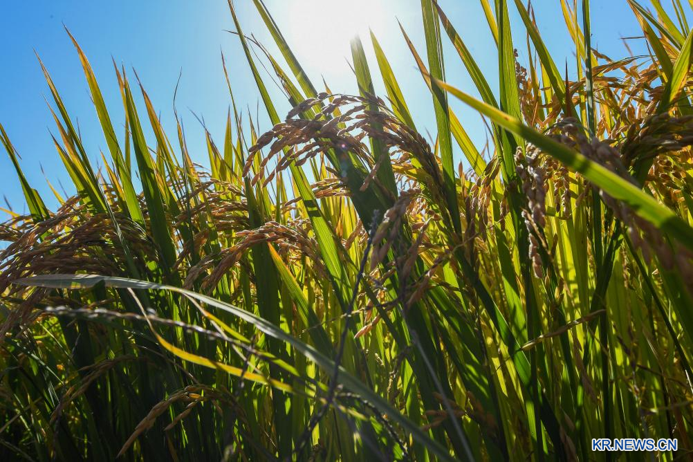 23일 지린성 지린시 융지현 차루허진에서 촬영한 벼.