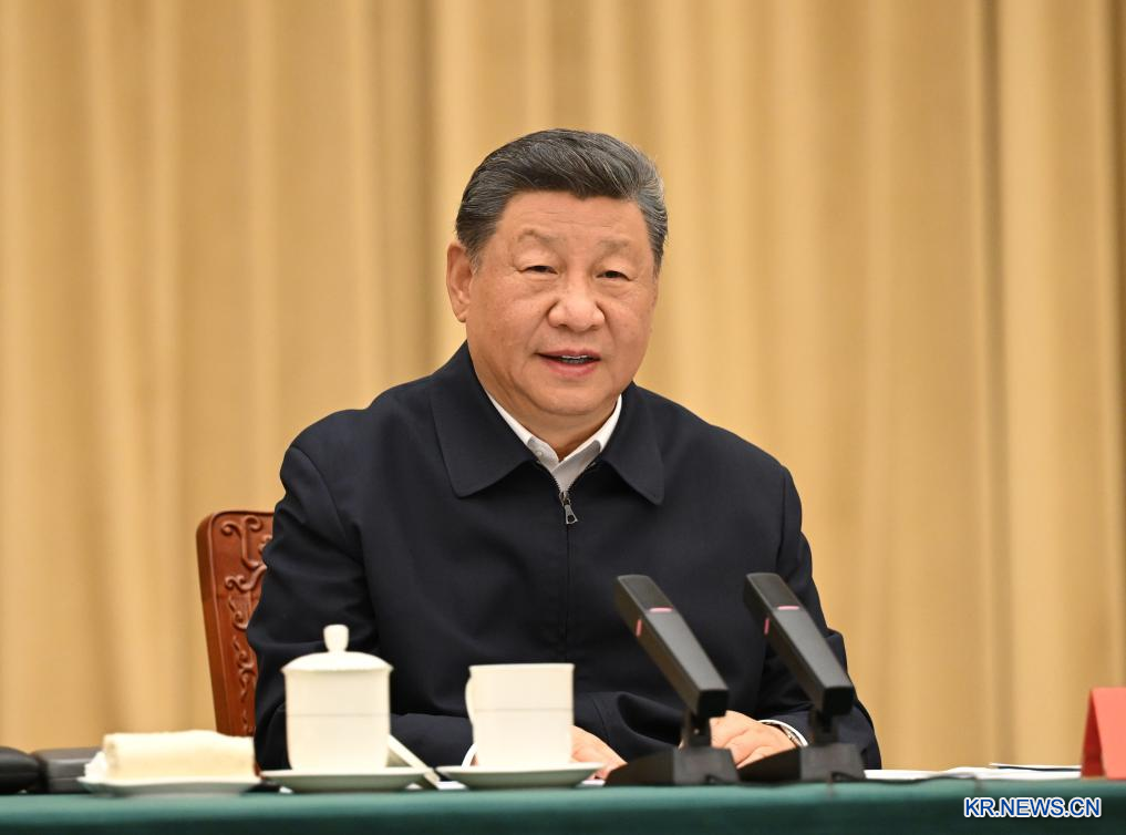 중앙대표단을 이끌고 신장위구르자치구 설립 70주년 경축행사에 참석한 시진핑(習近平) 중국 공산당 중앙위원회 총서기, 국가주석, 중앙군사위원회 주석은 24일 오후 우루무치(烏魯木齊)에서 신장위구르자치구 당위원회와 정부의 업무 보고를 청취하고 중요 연설을 했다.[촬영/신화사 기자 셰환츠(謝環馳)]pagebreak