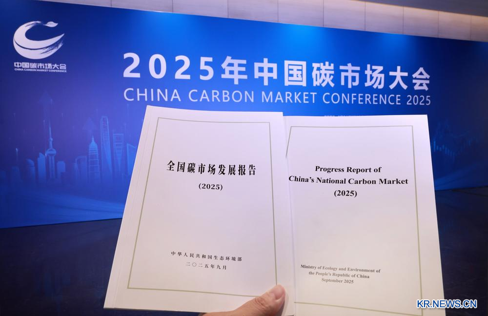 [신화망 상하이 9월25일] 24일 '2025년 중국 탄소시장대회'에서 촬영한 '전국 탄소시장 발전 보고서(2025)'.