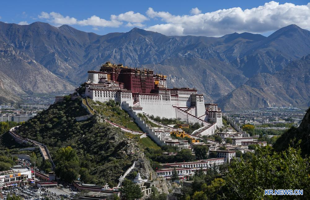 [신화망 라싸 9월26일] 25일 시짱(西藏)자치구 라싸(拉薩) 퇀제(團結)공원 옆 야오왕산(藥王山) 산책로에서 바라본 포탈라궁(布達拉宮).