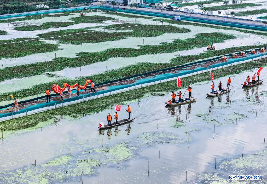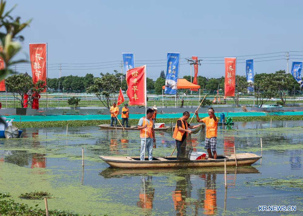 [신화망 후저우 9월27일] 26일 저장(浙江)성 후저우(湖州)시 우싱(吳興)구 즈리(織里)진에서 '후저우 셰린먼(蟹臨門) 참게 축제'가 열렸다. 이번 행사에는 참게 양식 관련 업체 53개와 양식업자 200여 명이 참가했다.