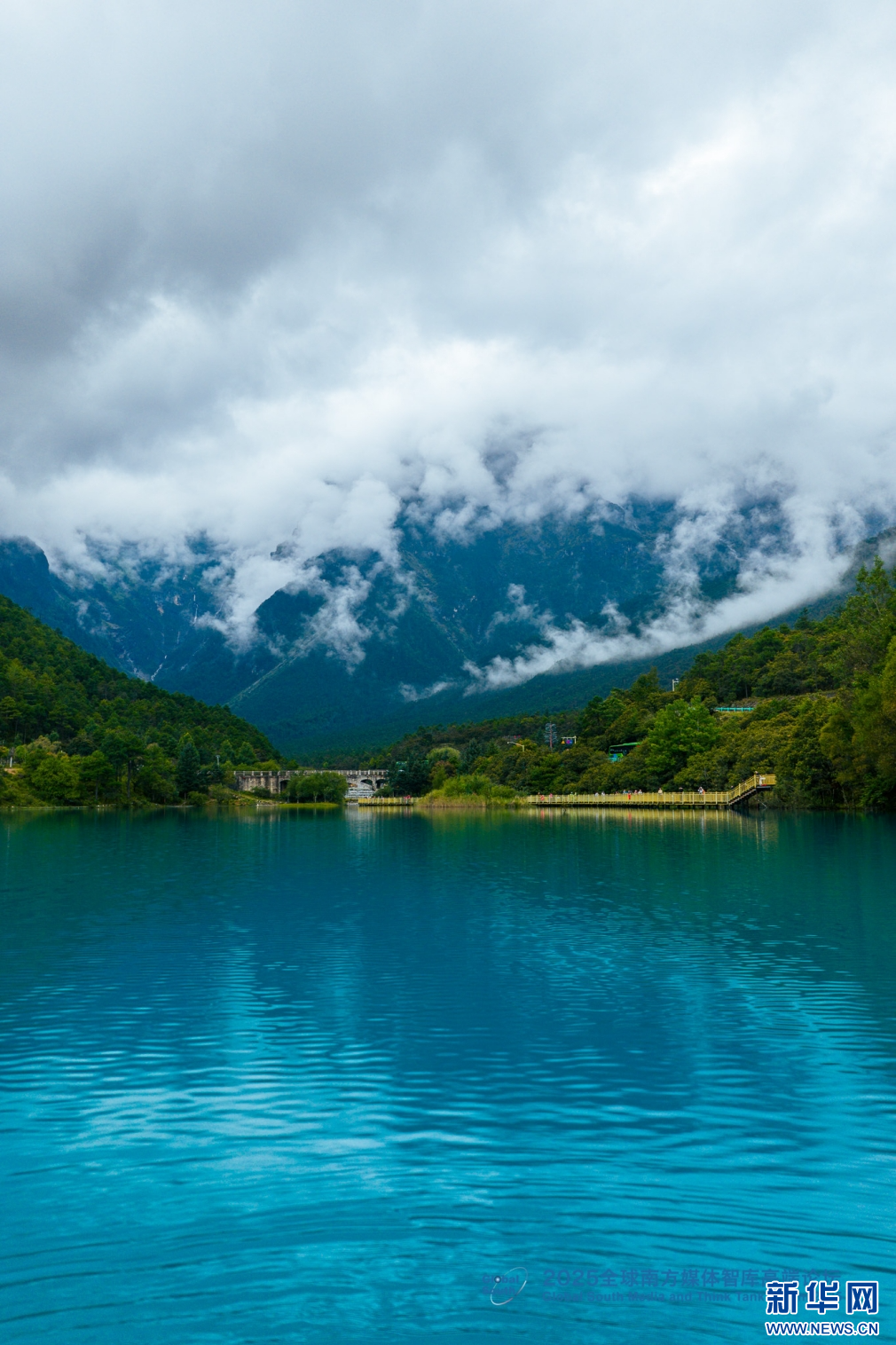 리장 란웨구(藍月谷)를 유람하는 관광객.