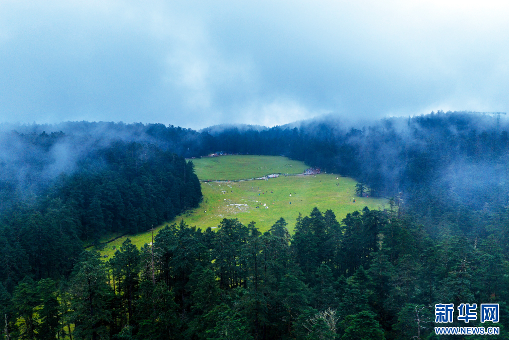 리장 윈산핑(雲杉坪) 풍경을 드론으로 내려다봤다.
