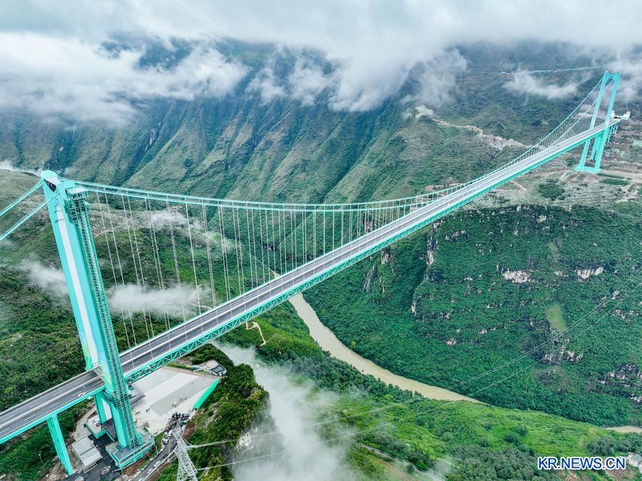 [신화망 구이양 9월30일] 세계에서 가장 높은 다리인 구이저우(貴州) 화장(花江)협곡대교가 완공돼 28일 정식 개통됐다. 해당 대교는 수면에서 교량 노면까지 수직 높이 625m, 주 경간 길이 1천420m로 모두 세계 1위라는 기록을 세웠을 뿐만 아니라 세계 최초로 현수교 메인 케이블에 '스마트 신경'을 접목했다.