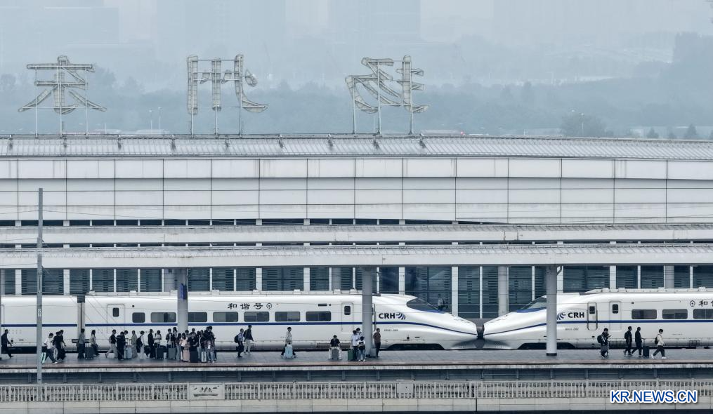 9월 29일에서 10월 10일까지 이어지는 12일간의 국경절·중추절 연휴 철도 운송이 이날 시작됐다. 2025.9.29