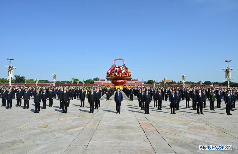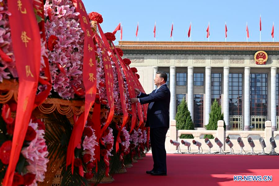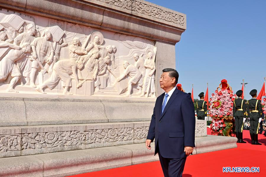 [신화망 베이징 10월1일] 중국 열사기념일을 맞아 인민영웅을 위한 헌화식이 30일 오전 베이징 톈안먼(天安門) 광장에서 성대하게 열렸다.