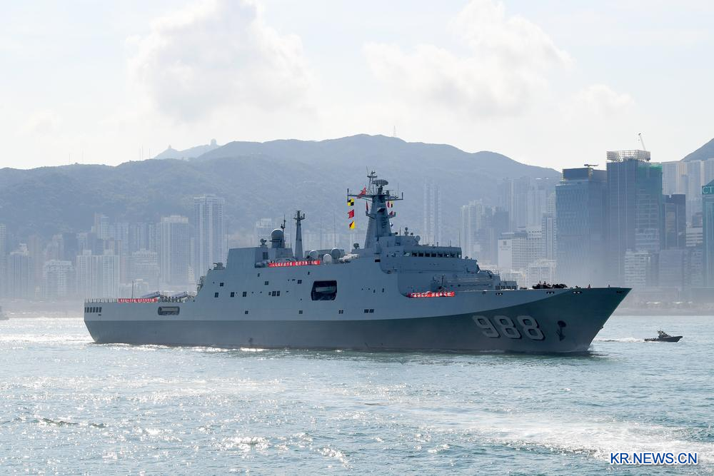 [신화망 홍콩 10월1일] 30일 중국 해군 치지광(戚繼光)함이 홍콩 빅토리아항을 통과했다.