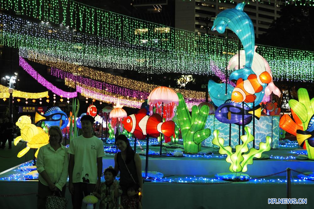 [신화망 홍콩 10월1일] 9월 30일 홍콩 빅토리아공원을 찾은 사람들이 꽃등을 둘러보고 있다.