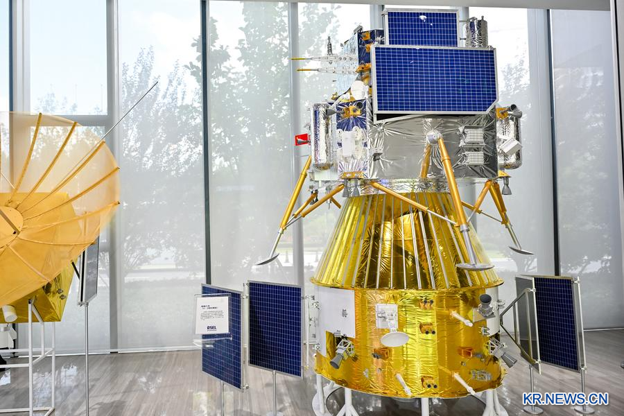 지난 6월 30일 심우주탐사실험실에서 촬영한 달 탐사선 '창어(嫦娥) 6호' 모형.