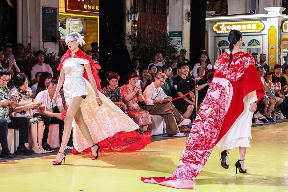 이날 패션쇼가 한창인 하이커우 치러우 옛 거리. 2025.10.8