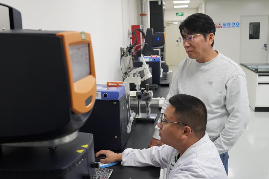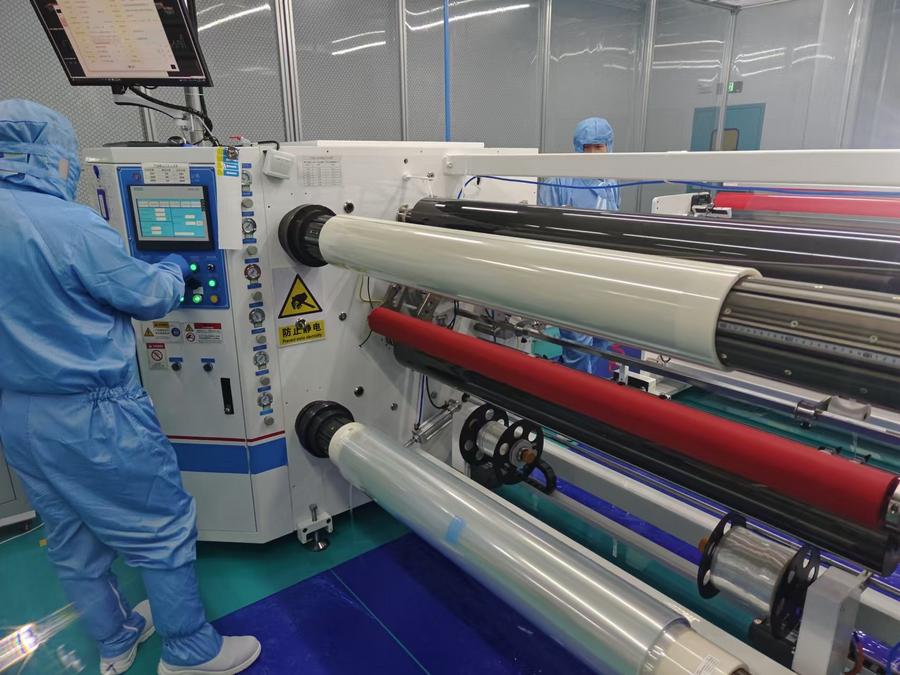 [신화망 창춘 10월12일] 중국 지린(吉林)성 중한(창춘)국제협력시범구에 입주한 한중 합자기업 CTMS(長春天明盛)에 들어서자 광학용 투명접착필름(OCA) 생산라인이 눈에 띈다.