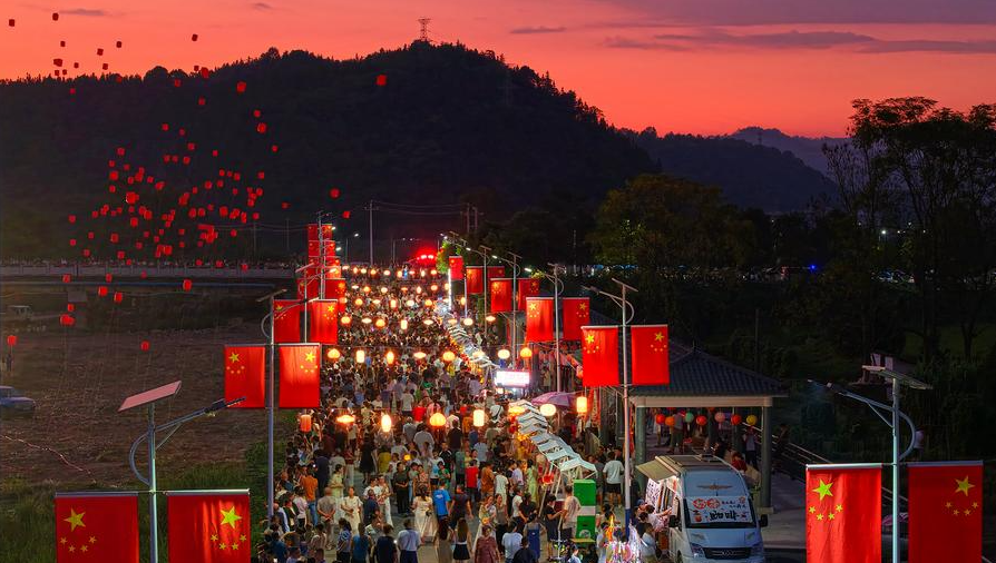1일 구이저우(貴州)성 쭌이(遵義)시 쑤이양(綏陽)현에서 열린 '국경절·중추절 맞이' 음악·미식 페스티벌 현장에서는 각 향·진의 우수 농특산물이 한자리에 모여 시민과 관광객들이 시식과 구매를 즐기는 모습을 보였다.