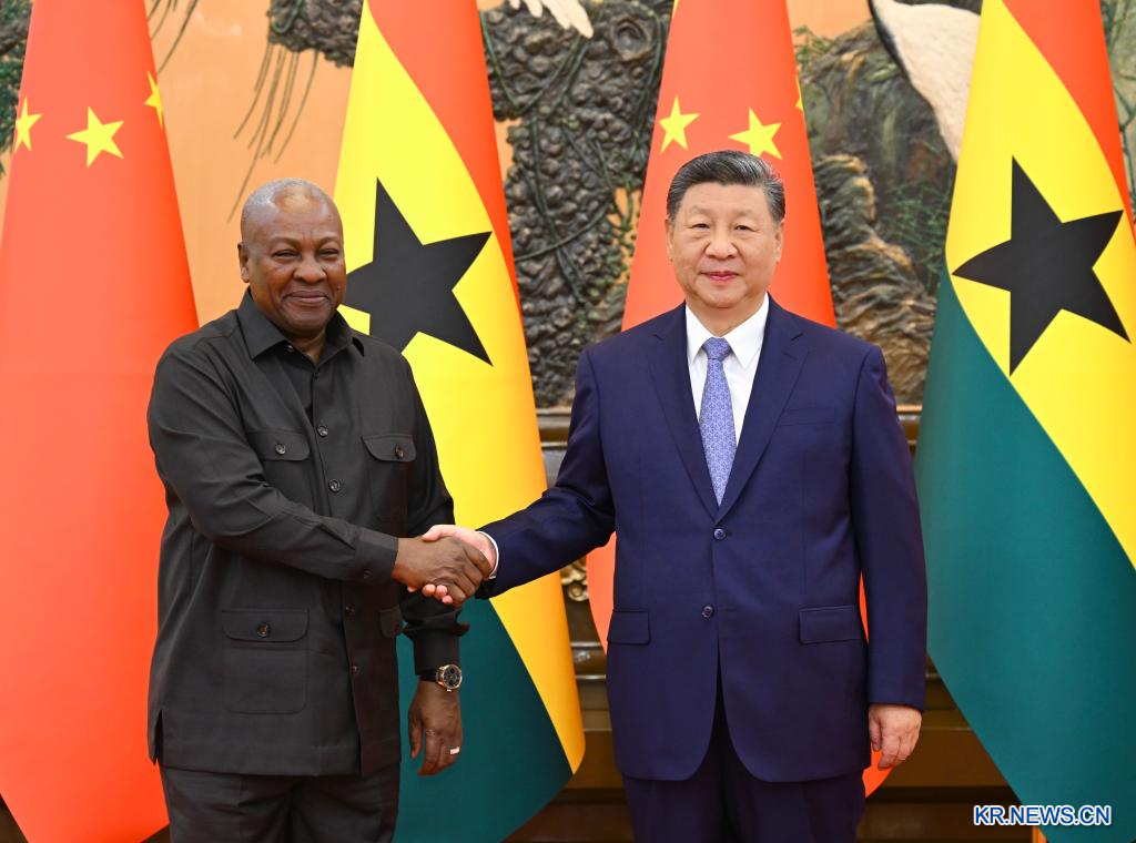 시진핑(習近平) 중국 국가주석이 14일 오전 베이징 인민대회당에서 글로벌 여성 서밋 참석차 중국을 방문한 존 드라마니 마하마 가나 대통령과 회견했다.[촬영/신화사 기자 자이젠란(翟健岚)]