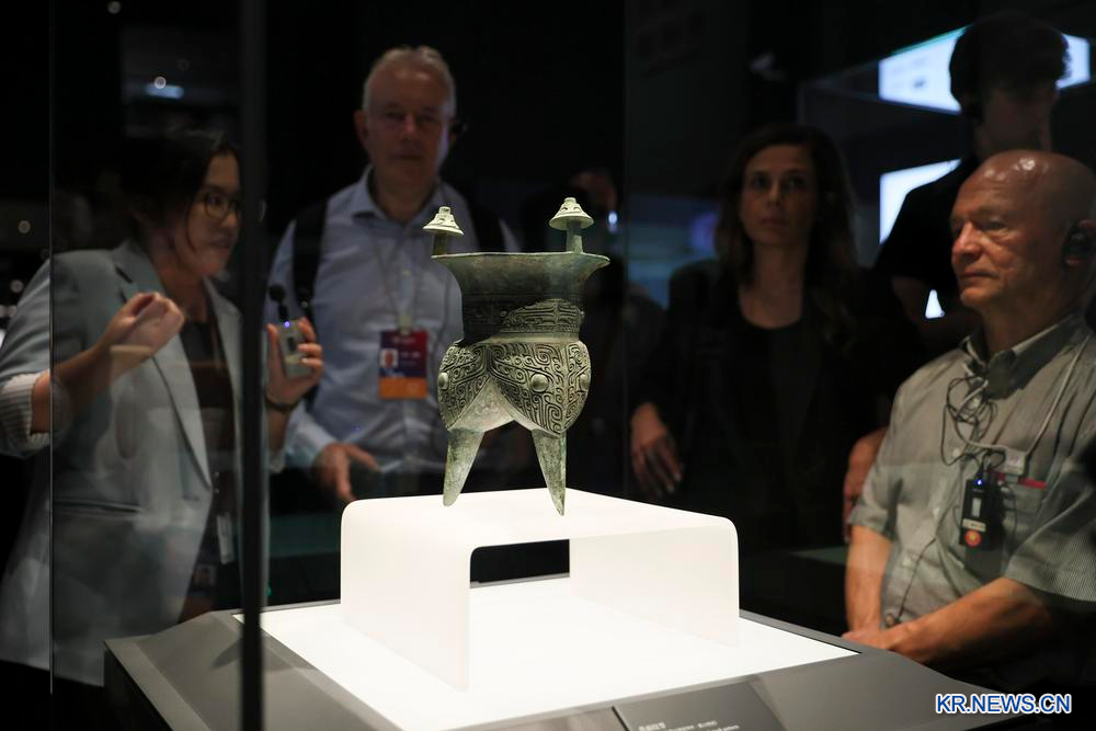 13일 귀빈들이 상하이박물관 동관 청동관을 참관하고 있다.