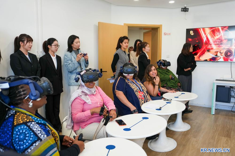 '글로벌 여성 서밋' 귀빈들이 이날 베이징시 순이(順義)구에 위치한 여성아동사회서비스센터를 방문했다. 2025.10.14