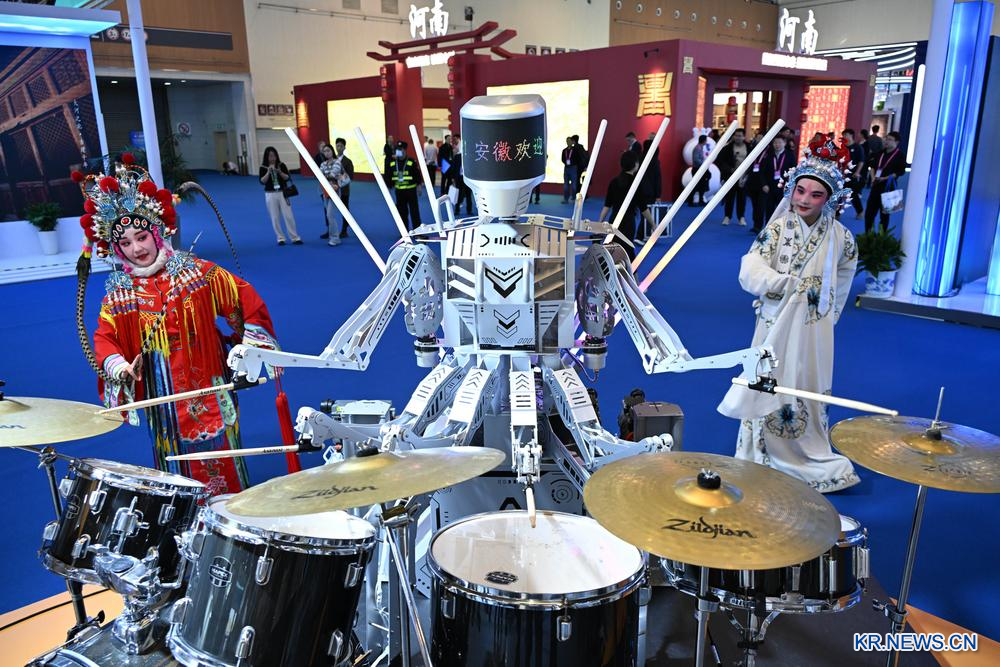 16일 '제10회 중국국제판권박람회 및 2025 국제판권포럼' 현장에서 공연을 펼치는 로봇.