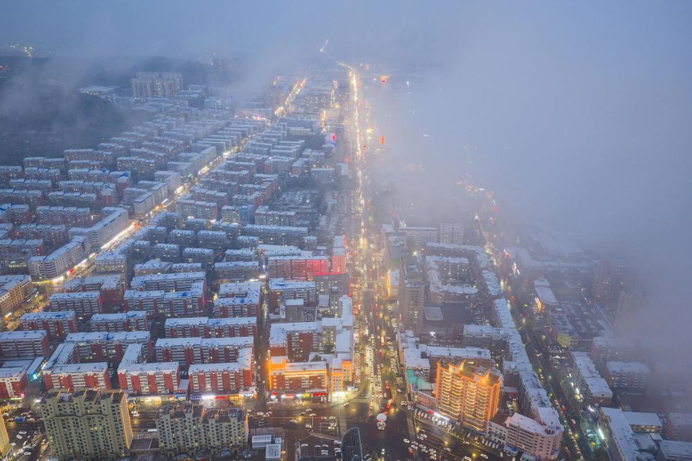 이날 눈 덮인 헤이룽장성 솽야산(雙鴨山)시를 드론으로 내려다봤다. 2025.10.15
