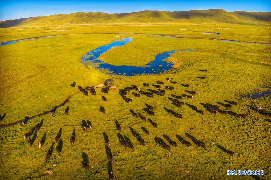 지난달 13일 쓰촨(四川)성 아바(阿壩)짱(藏)족창(羌)족자치주에서 유목민이 소떼를 몰고 가고 있다. (사진/신화통신)웅장한 고성이 오색 가을빛을 만나면