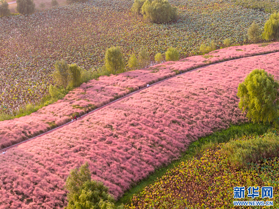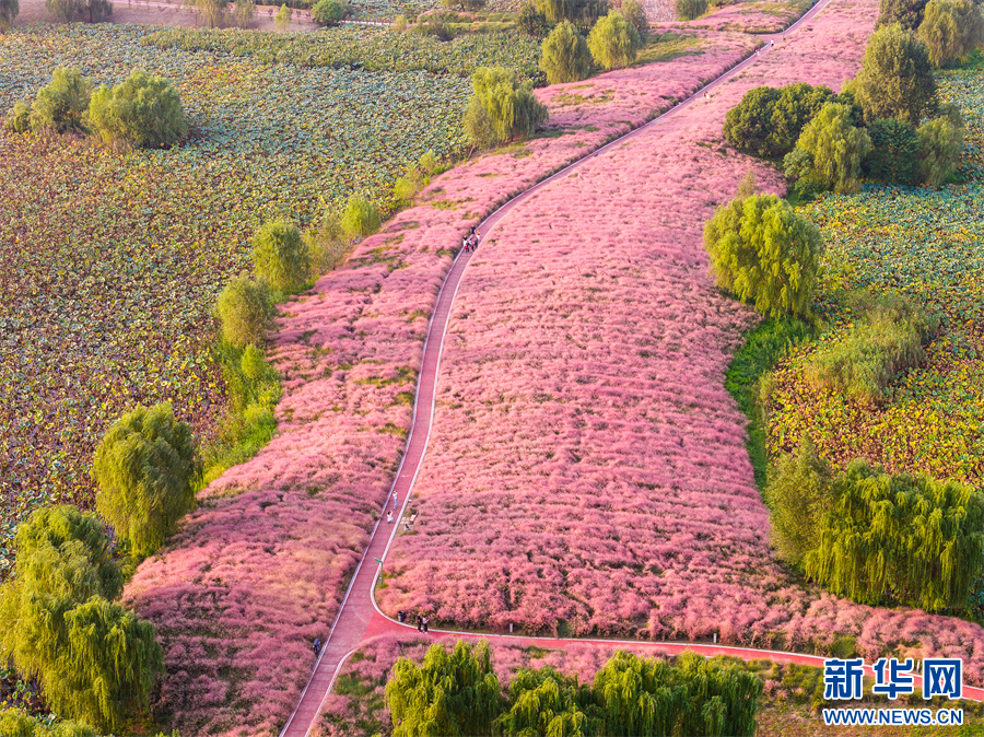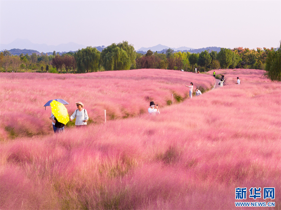 [신화망 베이징 10월18일] 최근 안후이(安徽)성 츠저우(池州)시 핑톈호(平天湖) 생태습지에 핑크뮬리가 절정을 이루고 있어 관광객의 발걸음이 이어지고 있다.