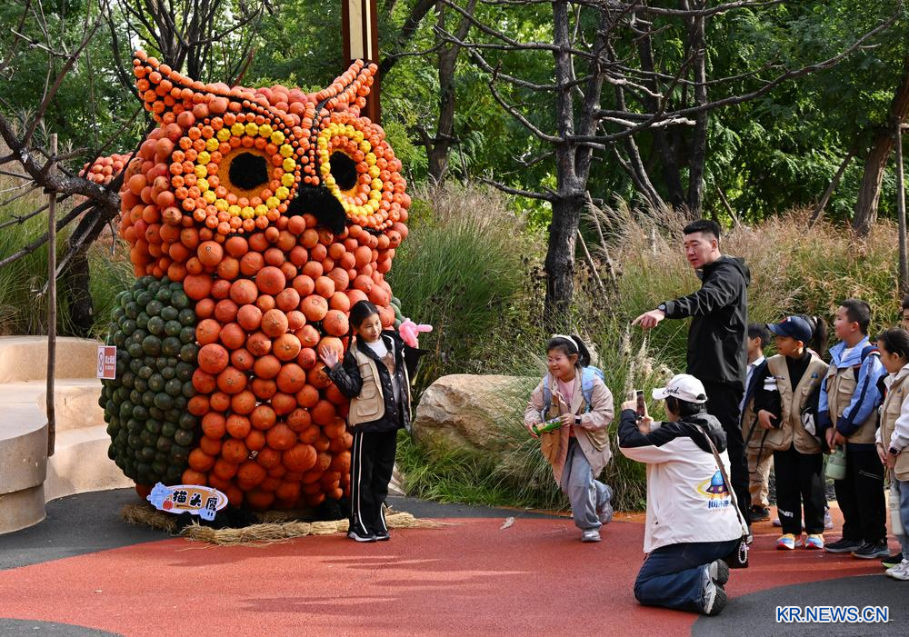 산둥(山東)성 칭다오(青島)시 동방에덴원에서 '호박 예술 왕국' 테마전이 열리고 있다. 다양한 품종과 색상의 호박으로 만든 만화 캐릭터 모양의 조형물들이 관광지 안에 설치돼 관광객들의 발길이 이어지고 있다. 2025.10.19