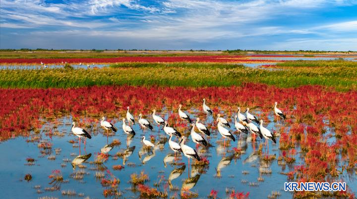 [신화망 지난 10월20일] 산둥(山東)성 둥잉(東營)시 컨리(墾利)구에 위치한 황허(黃河) 삼각주 국가급 자연보호구는 동아시아-호주, 동아시아-환서태평양 두 철새 이동 경로가 교차하는 지점에 자리해 있다. 이곳은 국제 철새 이동 보호의 핵심 지역으로 '새들의 국제공항'으로 불린다. 해마다 가을·겨울이면 수백만 마리의 철새가 이곳을 경유하는 모습이 장관을 이룬다.