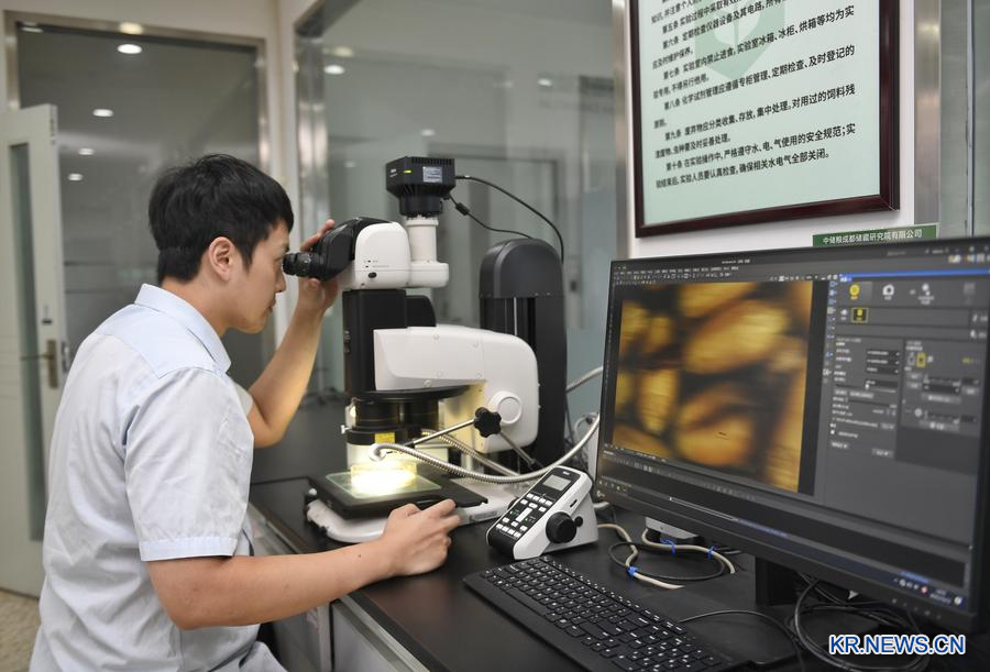 최근 식량비축관리그룹공사 청두 칭바이장(青白江)창고저장회사는 여러 곡물 저장 과학기술 연구개발 기관과 긴밀히 협력해 ▷스마트 검사 플랫폼 ▷인공지능(AI) 해충 모니터링 시스템 ▷이동식 청소 장비 등 곡물 저장 기술∙장비를 응용해 저장의 효율성과 품질을 크게 향상시켰다. (사진/신화통신)