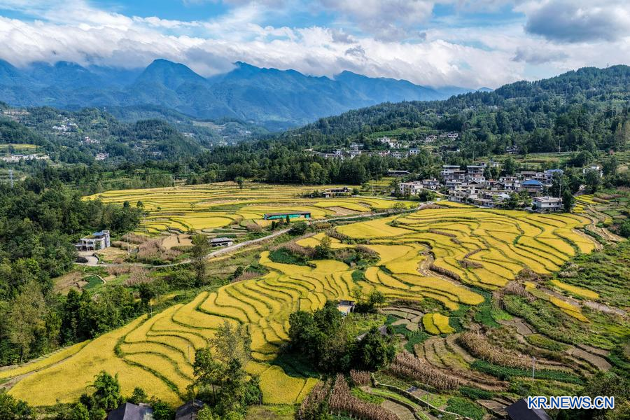 [신화망 베이징 10월23일] 수확의 계절인 가을. 평야의 경작지부터 높은 산의 계단식 논에 이르기까지...중국 각지에서 국가 식량 안보를 책임지기 위한 모두의 노력이 이어지고 있다.
