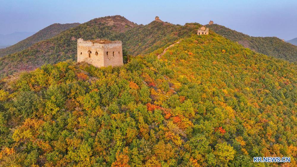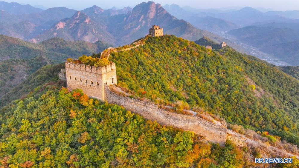 [신화망 친황다오 10월27일] 둥자커우(董家口) 만리장성의 가을 풍경을 25일 드론에 담았다.