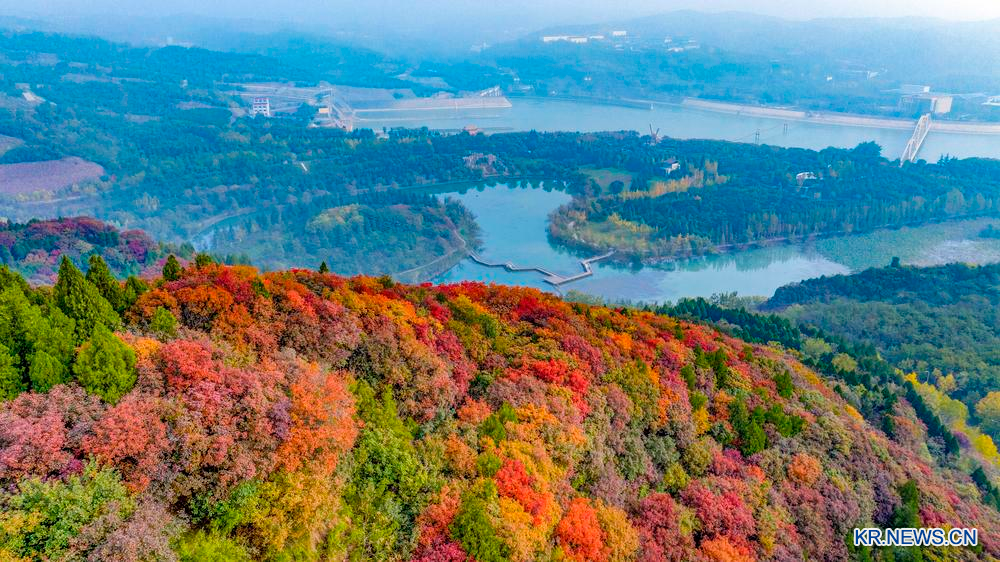 [신화망 뤄양 10월29일] 깊어가는 가을 허난(河南)성 뤄양(洛陽)시에 위치한 황허(黃河) 샤오랑디(小浪底) 수리허브 관광지 일대가 오색 단풍으로 물들어 한 폭의 그림 같은 가을 풍경을 자아내고 있다.
