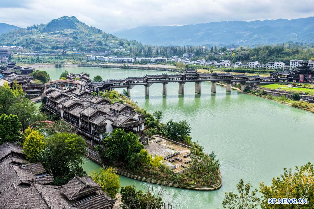 [신화망 충칭 10월31일] 충칭(重慶)시 첸장(黔江)구에 위치한 줘수이(濯水)고진(古鎭∙옛 마을)은 독특한 투자(土家)족 건축 양식을 갖춘 중국 국가 5A급 관광구다. 당(唐)나라 말기에 건설돼 명청(明淸) 시대에 번성했던 천년의 역사를 가진 마을이다.
