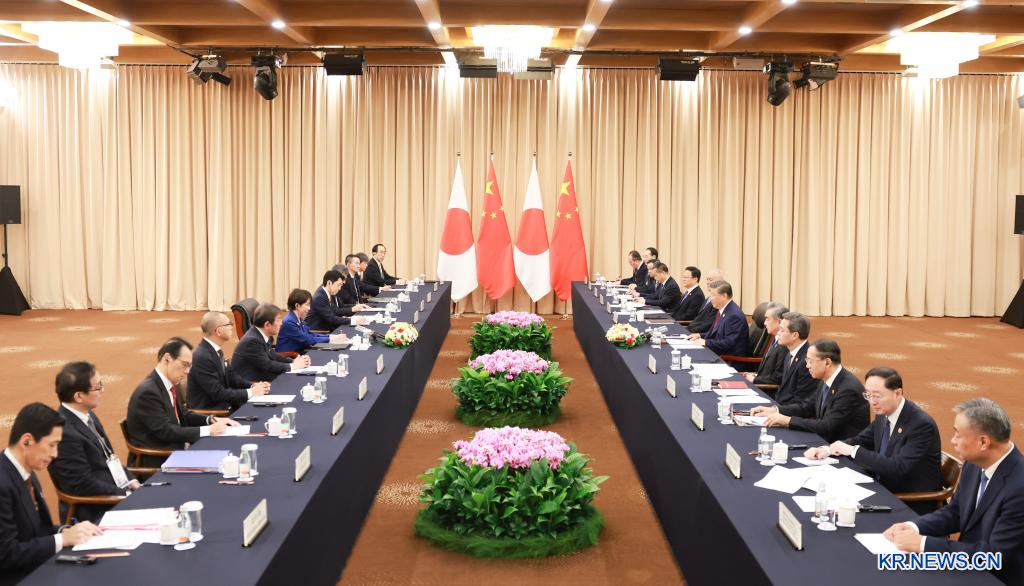 31일 오후 시진핑(習近平) 중국 국가주석이 경주에서 열린 '제32차 아시아태평양경제협력체(APEC) 경제체 지도자회의' 기간 다카이치 사나에 일본 총리와 회견했다.[촬영/신화사 기자 딩린(丁林)]