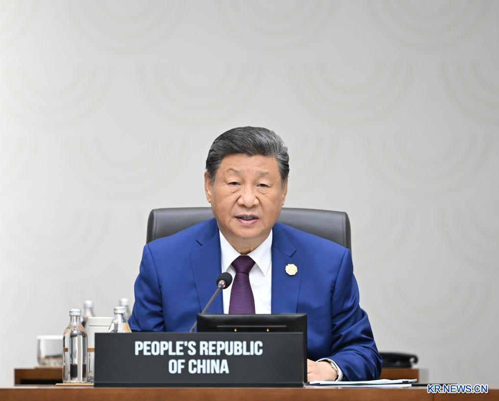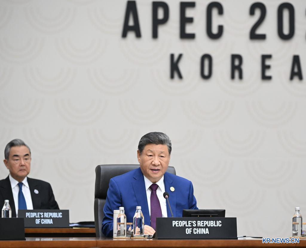 1일 오전 시진핑(習近平) 중국 국가주석이 한국 경주에서 열린 '제32차 아시아태평양경제협력체(APEC) 경제체 지도자회의' 제2세션에 참석해 '지속가능한 아름다운 내일을 함께 열어가자'는 제목의 중요 연설을 발표했다.