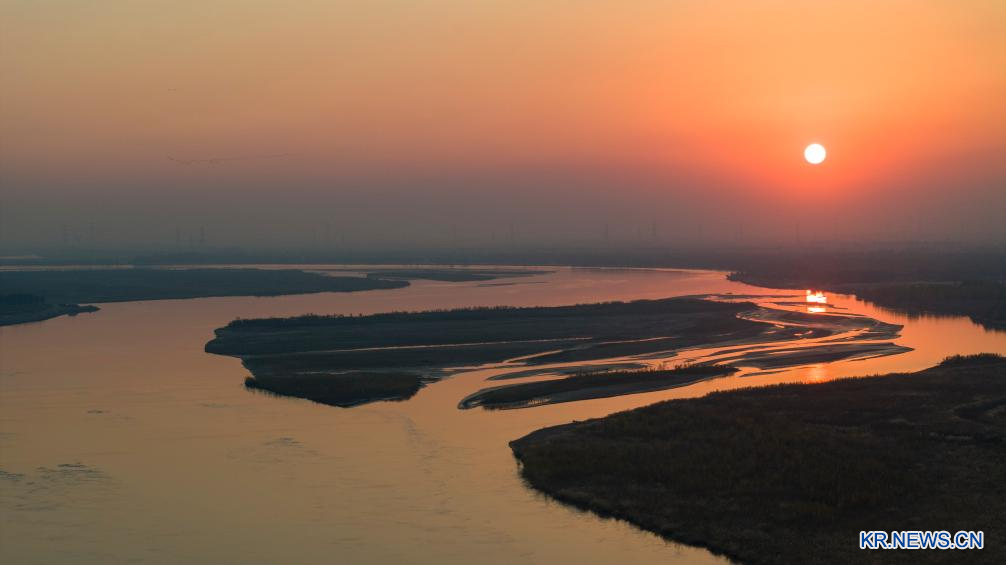 [신화망 인촨 11월6일] 4일 닝샤(寧夏)회족자치구 우중(吳忠)시 리퉁(利通)구 황허(黃河) 풍경을 드론 사진에 담았다.