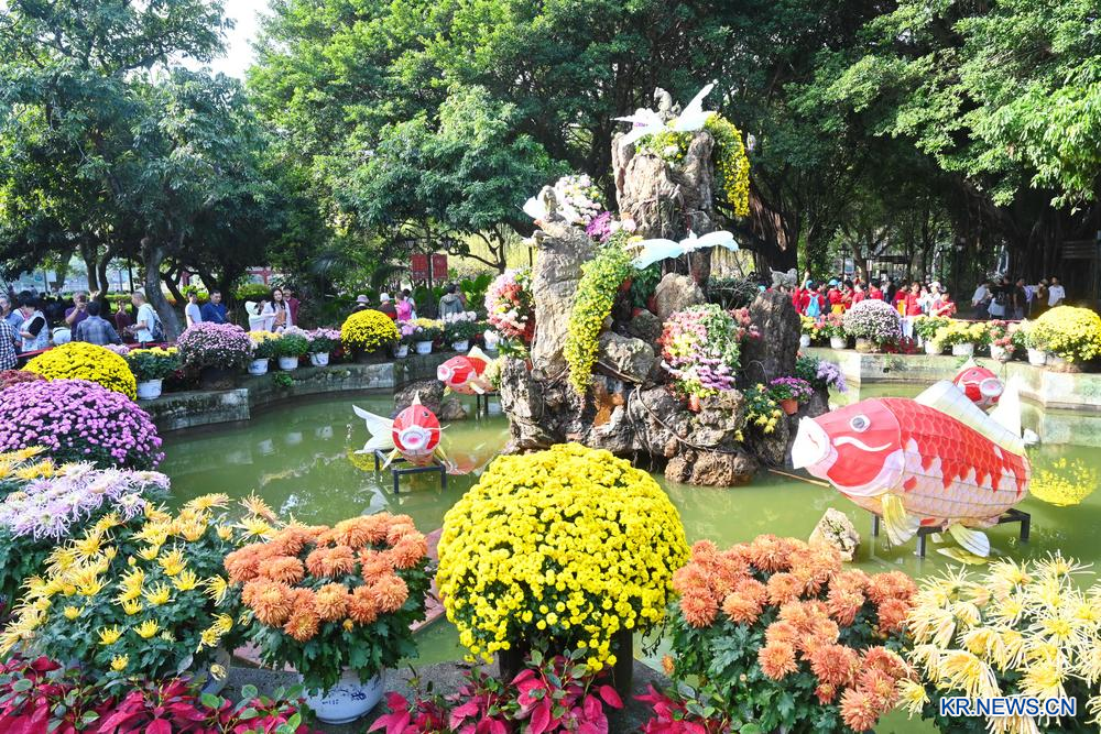 [신화망 푸저우 11월10일] 9일 푸젠(福建)성 푸저우(福州)시 시후(西湖)공원에서 촬영한 가을 국화전시회.