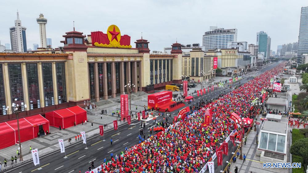 [신화망 난창 11월10일] '2025 난창(南昌) 마라톤'이 9일 장시(江西)성 난창시 바이(八一)광장에서 열렸다. 이번 대회에는 약 3만2천 명의 선수가 참가했다.