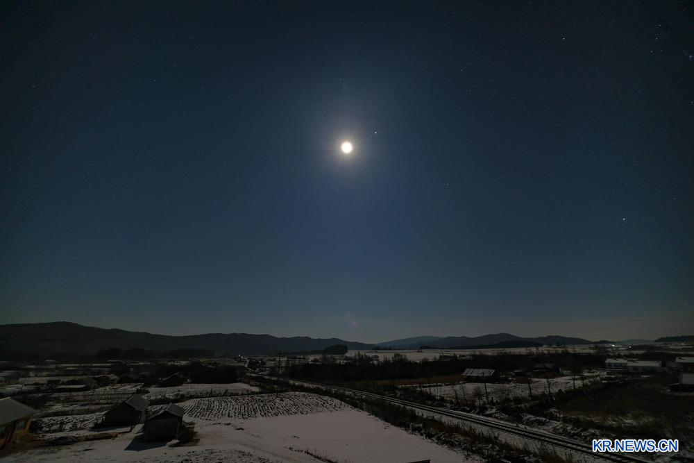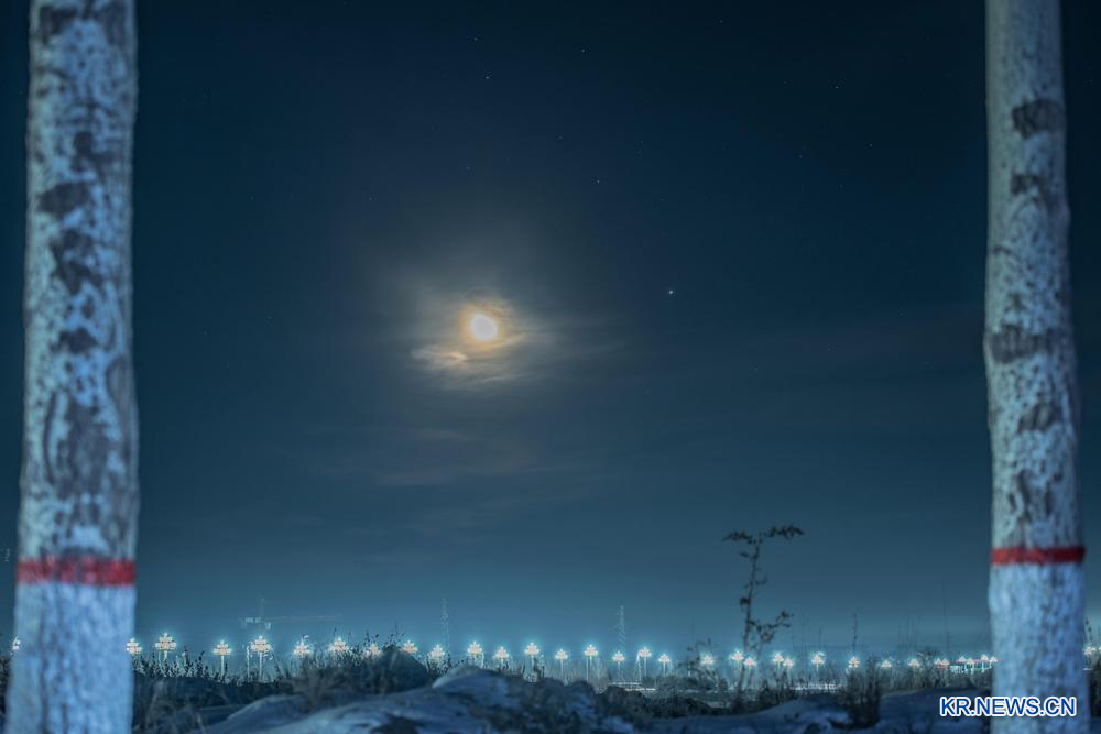 11일 헤이룽장(黑龍江)성 이춘(伊春)시에서 포착한 달과 별의 어우러짐. 2025.11.11