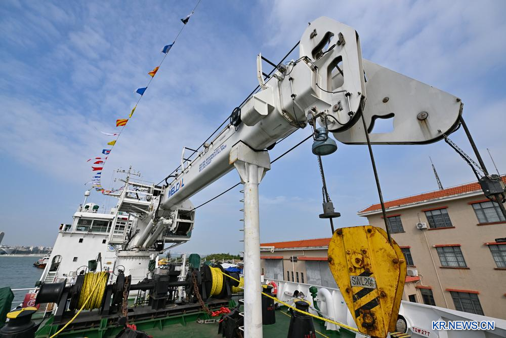 이날 하이커우(海口)에 정박 중인 '하이쉰 176'호를 드론 사진에 담았다. 2025.11.13
