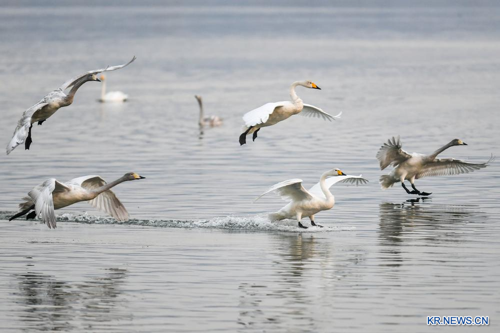 [신화망 윈청 11월14일] 초겨울로 접어들면서 산시(山西)성 핑루(平陸)현 황허(黃河)습지에 월동을 위해 시베리아에서 날아온 백조들이 모여들었다. 해마다 약 1만 마리의 백조들이 이곳에서 겨울을 난다.