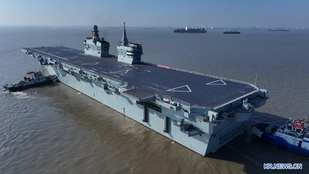 [신화망 상하이 11월15일] 14일 오전 9시경 중국의 첫 076형 강습상륙함인 쓰촨(四川)함이 상하이 후둥(滬東)중화조선소 부두에서 출항해 첫 항행 시험 임무를 시작했다. 이번 항행 시험에서는 주로 동력∙전력 등 쓰촨함 시스템의 신뢰성과 안정성을 테스트할 예정이다.