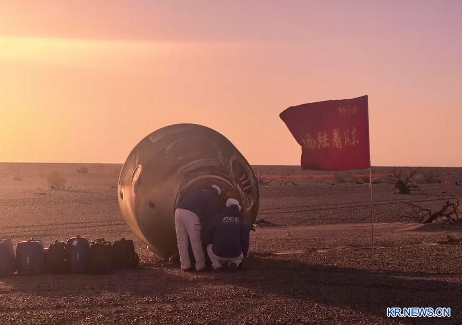 [신화망 베이징 11월15일] 중국 선저우(神舟) 20호 우주비행사를 태운 선저우 21호 유인우주선 귀환 캡슐이 14일 네이멍구(內蒙古)자치구 둥펑(東風)착륙장에 무사히 귀환했다.