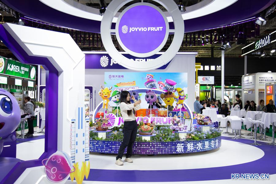 [신화망 상하이 11월17일] 최근 막을 내린 '제8회 중국국제수입박람회(CIIE)' 농식품 전시구역. 독특한 블루베리 품종이 눈에 띈다. 페루 사막 지역에서 재배된 이 블루베리는 CIIE에서 전 세계 최초로 공개됐다.