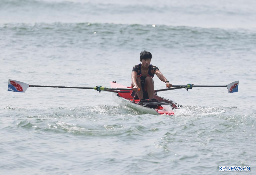17일 광둥성 양장시에서 열린 제15회 전국운동회 비치조정 남자 싱글스컬 결승 A에서 탄루카이(푸젠팀)가 룽전타오(쓰촨팀)를 꺾고 금메달을 땄다. [촬영/신화사 기자 리란(李然)]pagebreak